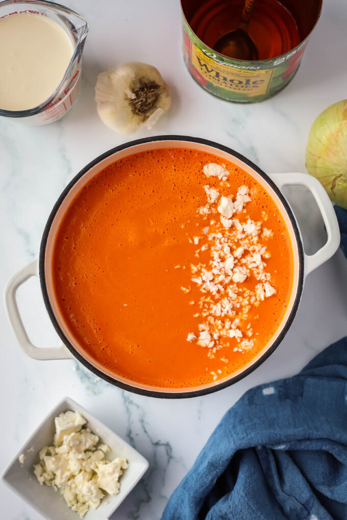 - Feta cheese: The star ingredient! It melts into the soup for tangy, salty flavor.