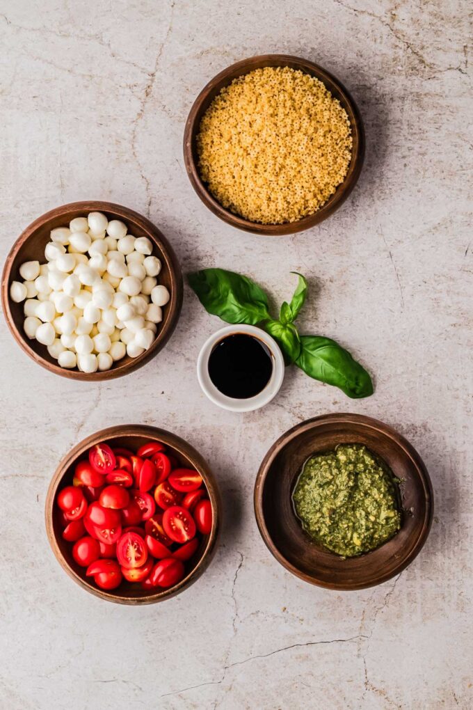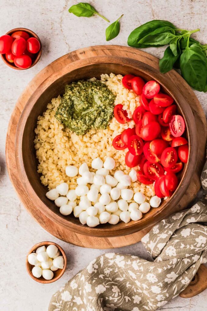 - Can I make this ahead of time? Yes! For the best texture, store the pesto-coated pastina separately and add the tomatoes and mozzarella just before serving.