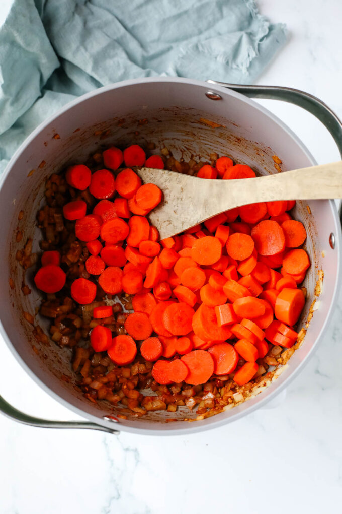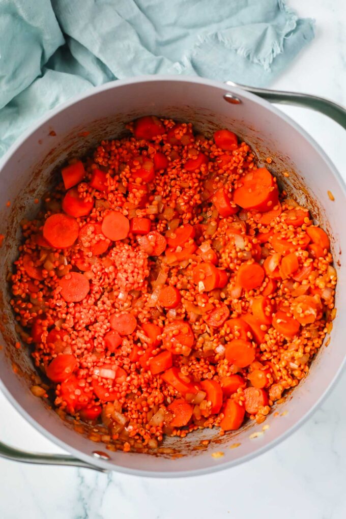 This carrot and red lentil soup is creamy, cozy, and surprisingly hearty, but still light enough for an easy lunch or weeknight dinner. Red lentils cook quickly, the carrots add natural sweetness, and the spices add plenty of flavor. This soup is simple, nourishing, and totally satisfying.
