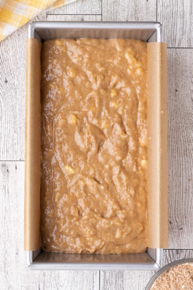 - Spoon the batter into the prepared pan and sprinkle generously with streusel.