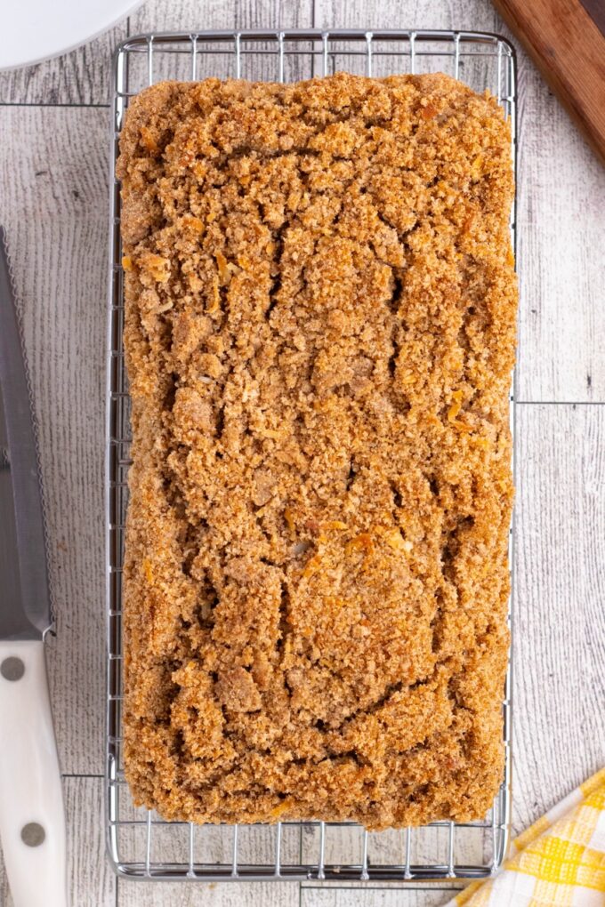 - Cool in the pan for 10 minutes, then transfer to a wire rack to cool completely before slicing.