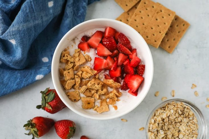 These strawberry cheesecake overnight oats pack a serious protein punch — and they taste like dessert! Creamy yogurt and cottage cheese combine with hearty oats for a wholesome and delicious breakfast.
