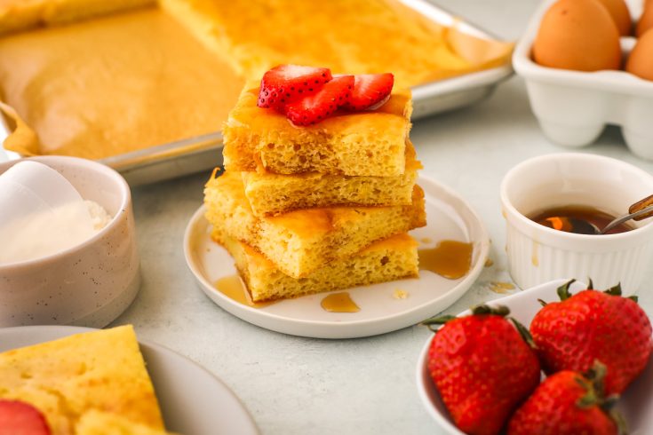 These sheet pan protein pancakes are light, fluffy, and perfect for a healthy breakfast! Make a batch of these for meal prep and you’ll have a protein-packed breakfast ready when you need it!