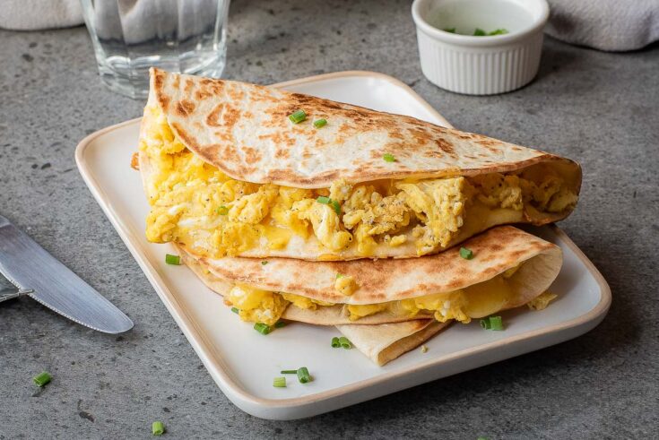 These scrambled egg quesadillas are the ultimate quick and easy breakfast. With fluffy eggs, melty cheese, and crispy tortillas, they’re a quick, protein-packed recipe you’ll want to make again and again.