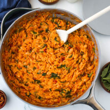 This delicious orzo pasta recipe is made in one pan with white beans, sun-dried tomatoes, garlic, and orzo. It’s an easy vegetarian dinner that is ready in under 30 minutes.