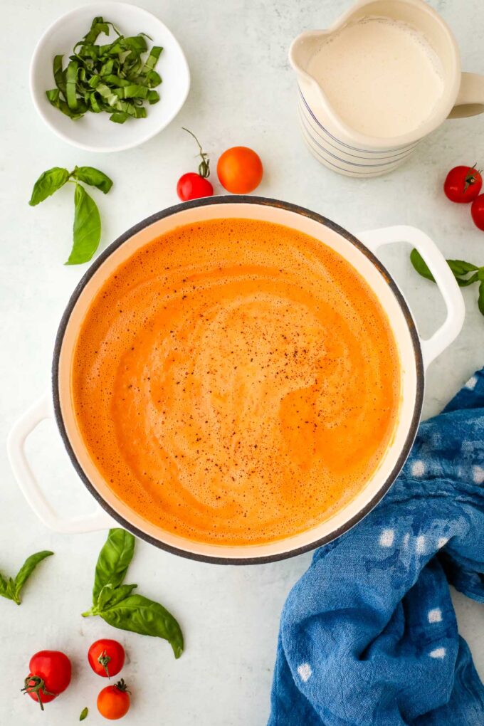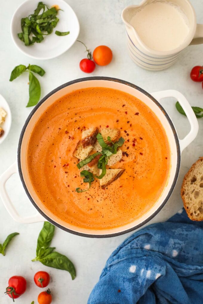If you like this recipe, try my high-protein tomato soup, vegan tomato bisque, cream cheese tomato soup, or red pepper and tomato soup.