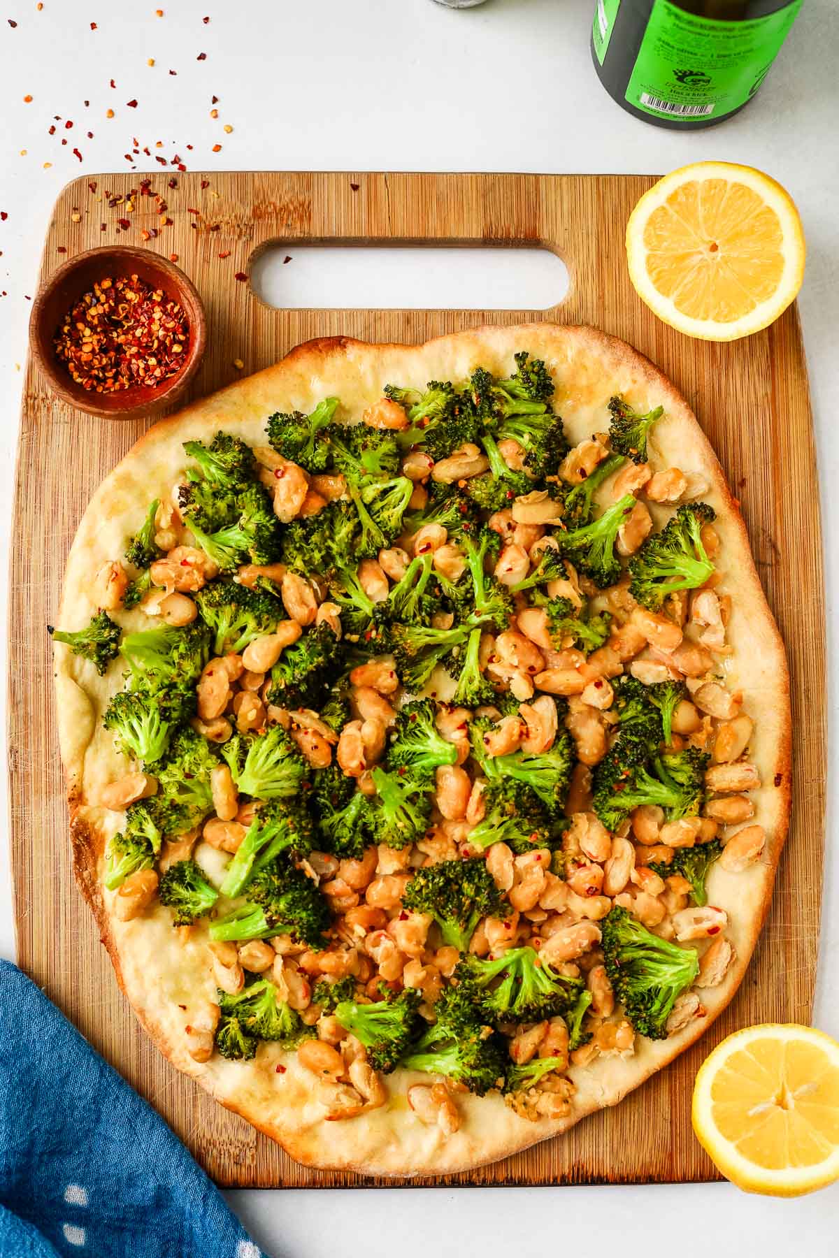 Instead of relying on cheese for richness, this recipe uses cannellini beans and olive oil to create a hearty, filling topping. The beans add a creamy texture that balances the garlicky broccoli perfectly. A few pinches of red pepper flakes add just the right amount of heat, and the lemon zest at the end brightens everything up.