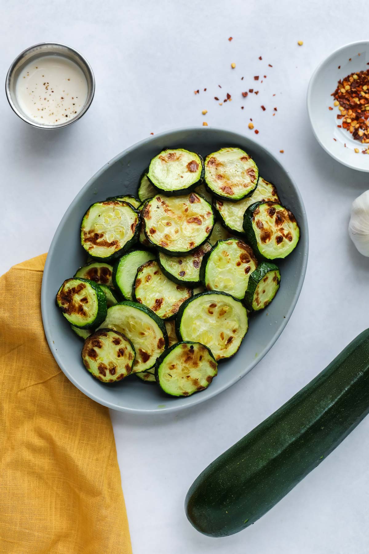 You'll need: zucchini, olive oil, garlic powder, and salt