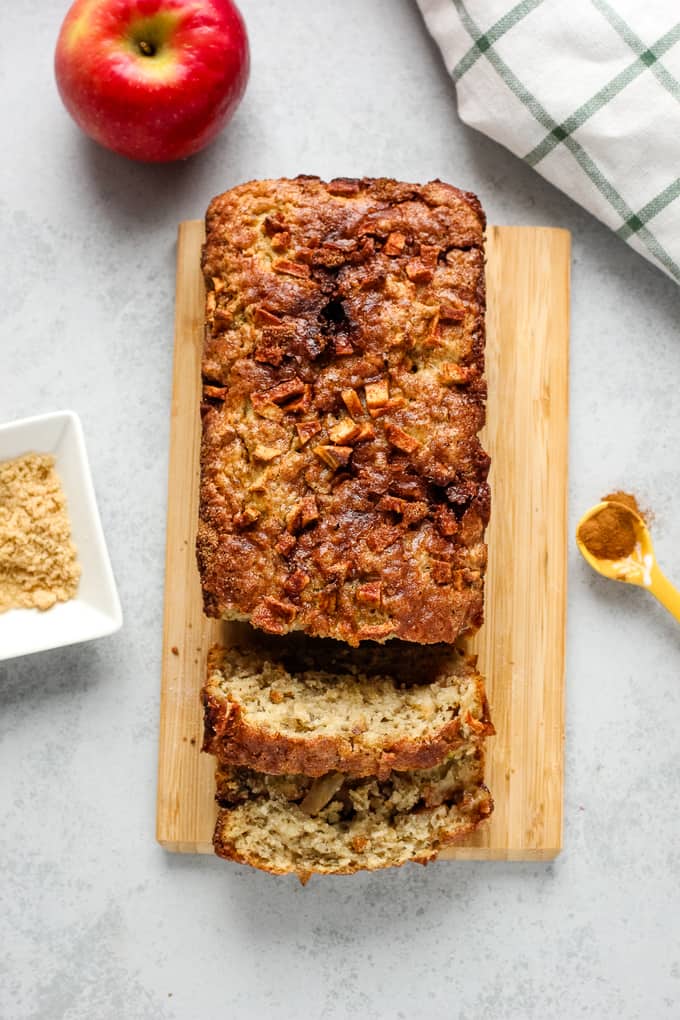 This apple cinnamon bread is a delicious fall treat! It’s perfect with a cup of coffee for breakfast or add a scoop of ice cream to turn this into dessert!