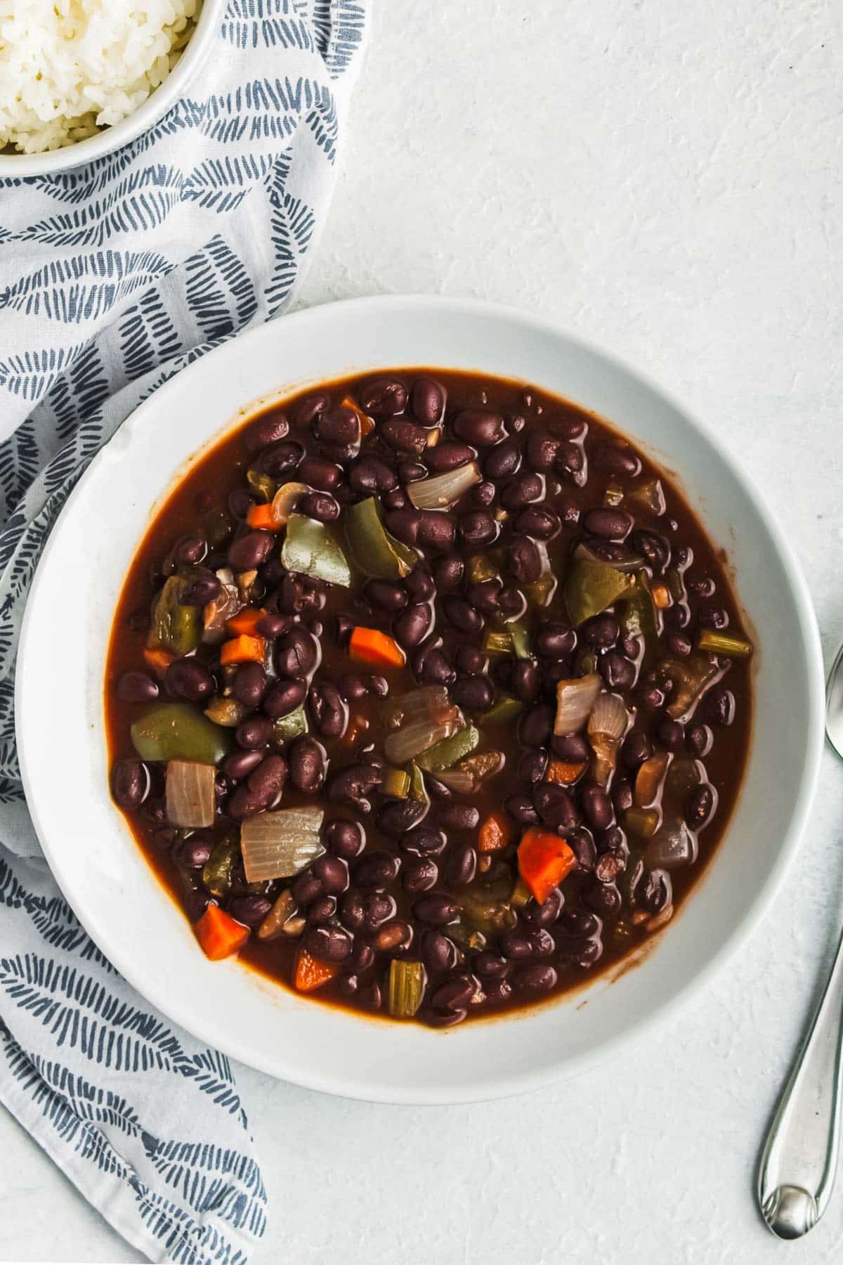 This hearty black bean soup is packed with vegetables and spices for a flavorful meal! It’s filled with plant-based protein, making this vegan soup super satisfying.