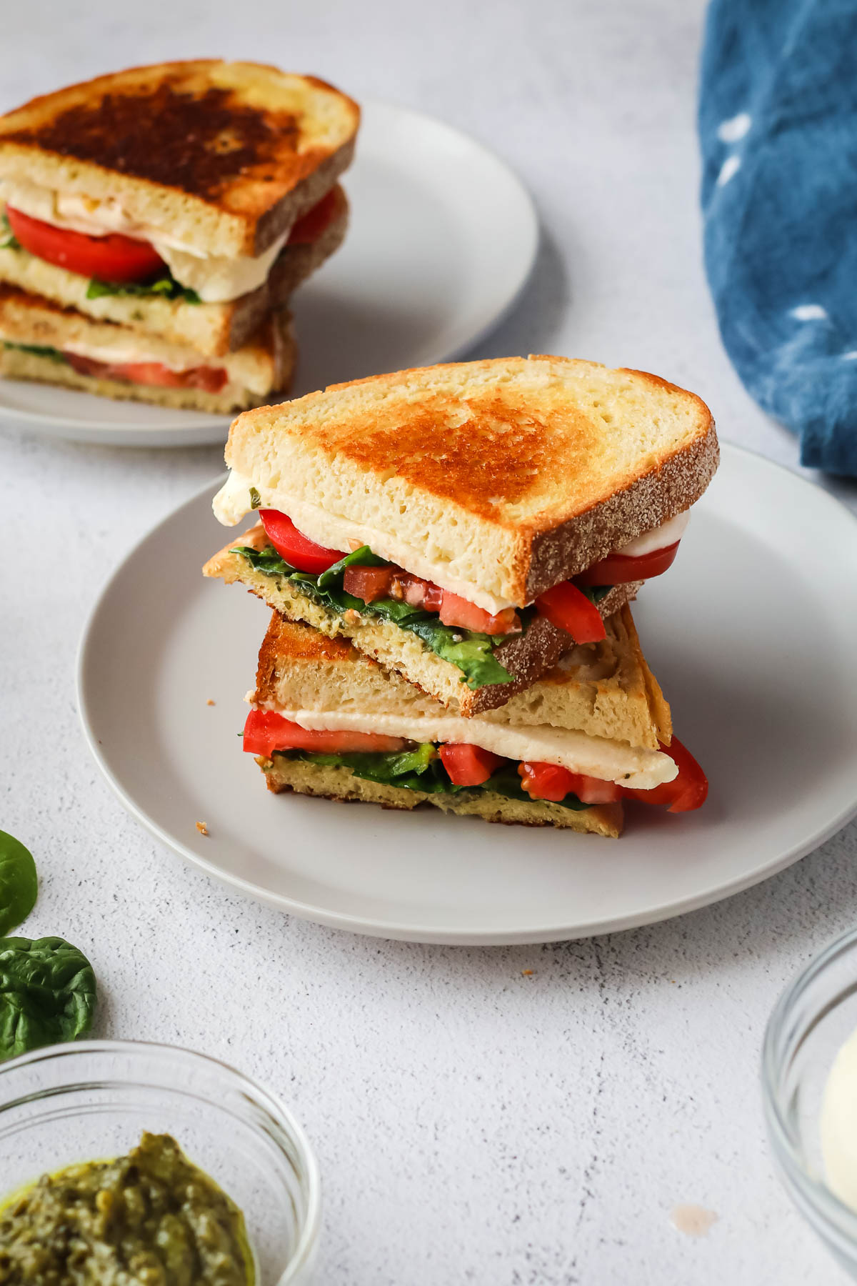 This Caprese grilled cheese sandwich is made with fresh mozzarella, juicy tomato slices, and a smear of salty pesto for a combination that takes your sandwich to the next level!