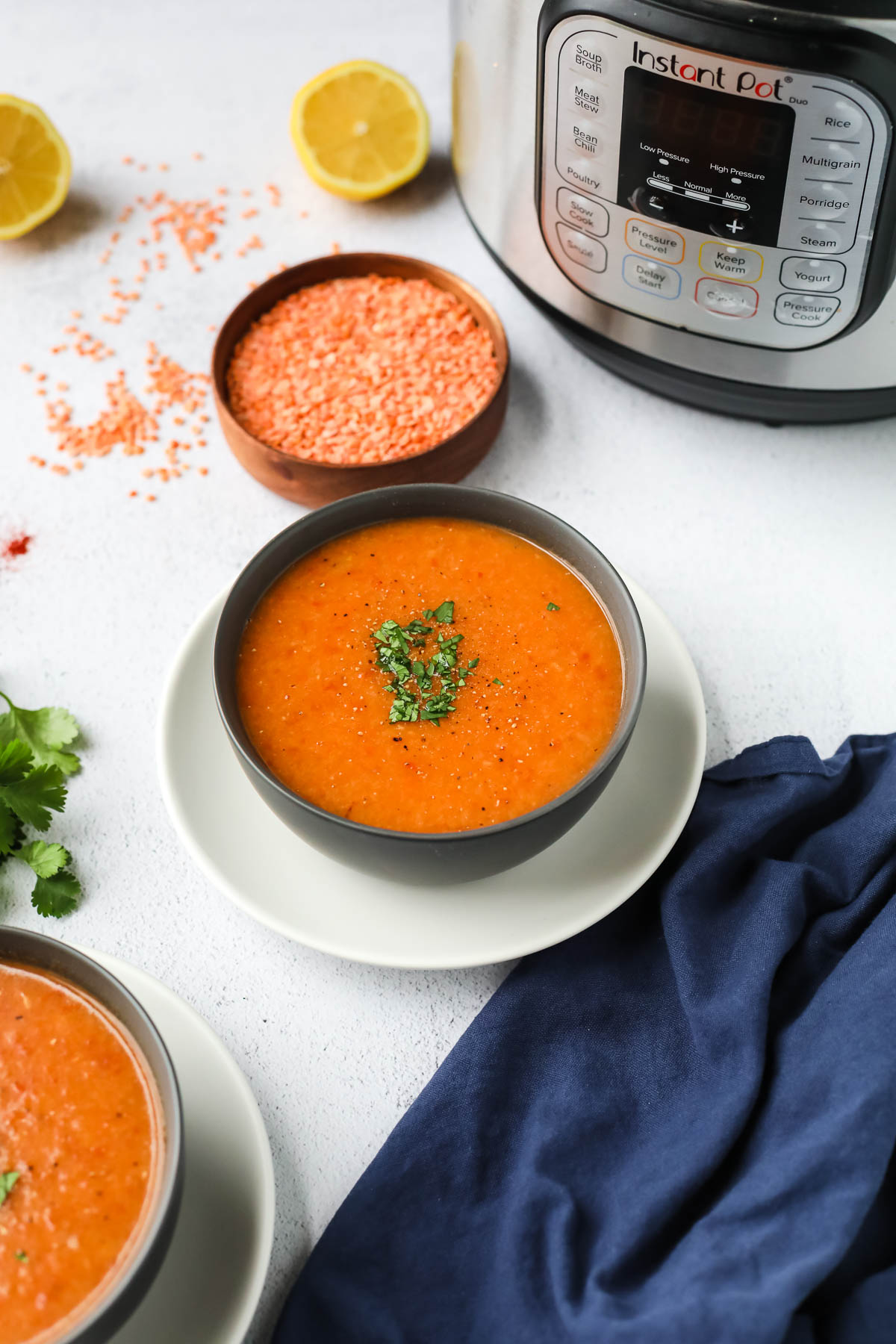 This Instant Pot Red Lentil Soup is packed with flavor and filled with plenty of plant-based protein to keep you satisfied.