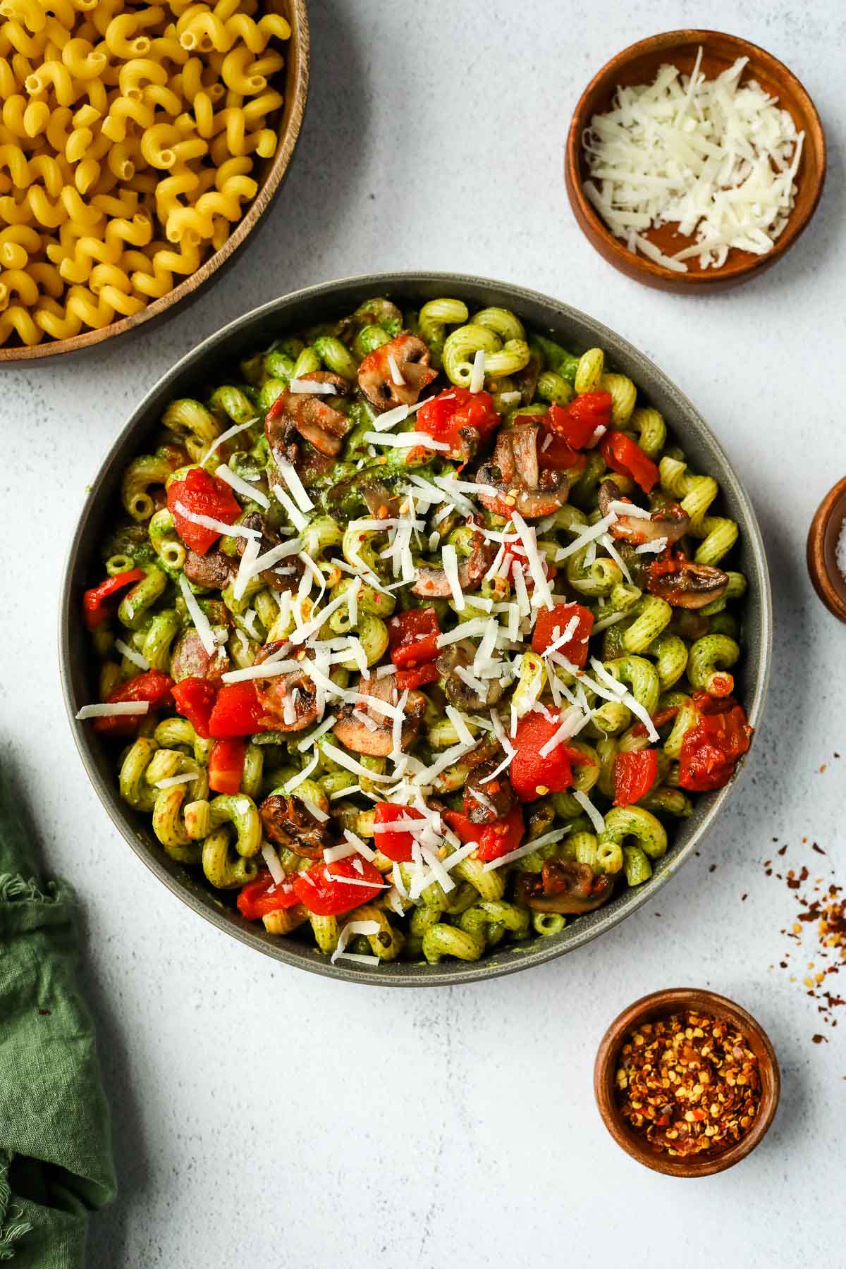In a separate skillet, heat olive oil over medium heat for 30 seconds. Add mushrooms and cook for 3 minutes, stirring frequently, until some of the moisture is released.