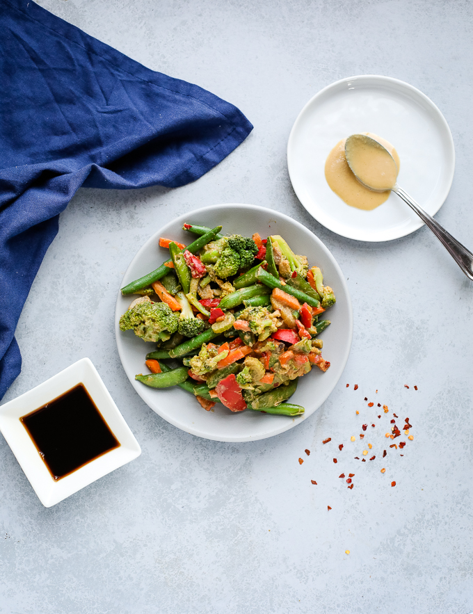 This 4 ingredient tahini stir fry sauce is creamy and spicy with plenty of savory flavors. It’s delicious on top of your favorite vegetables and protein!